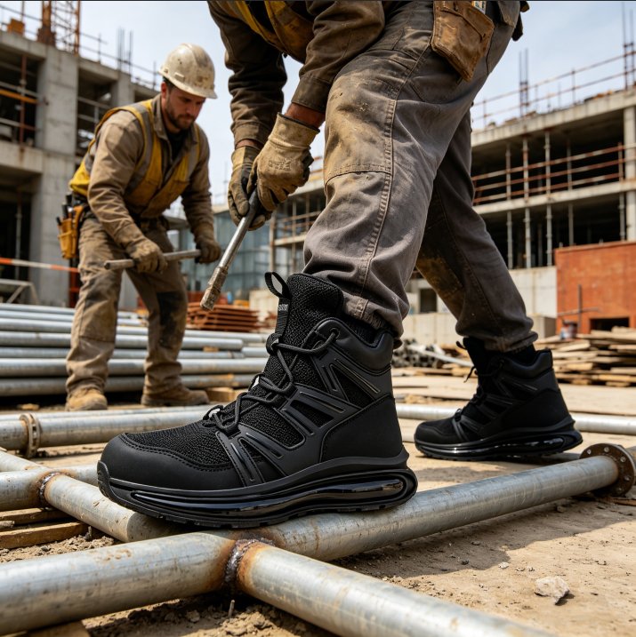 The design of the shoes takes into account the convenience of workers' daily operations, such as the stable lacing system, the snug fit of the shoe opening around the ankle, which effectively prevents dust from entering, and at the same time enhances foot support.